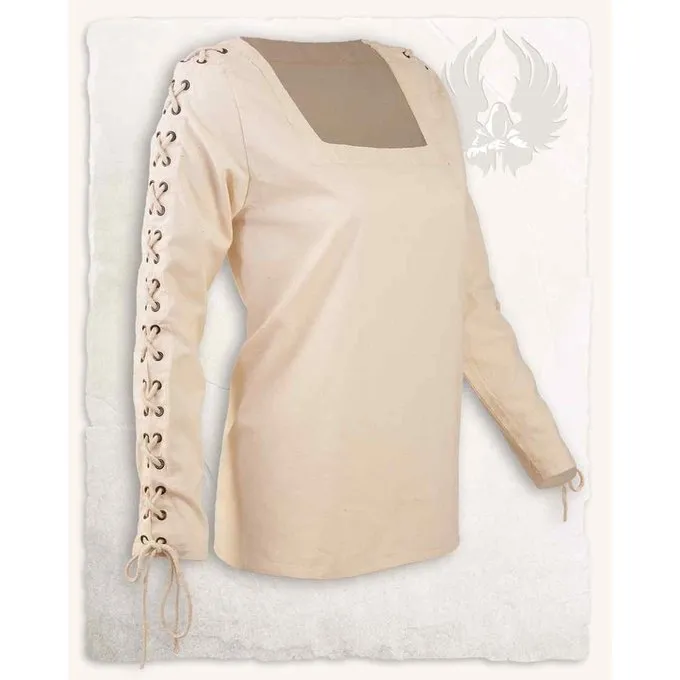 The Abby blouse is very characteristic with its laces on the sleeves. This blouse is a good basis for a large number of costumes: from pirate to adventurer to your own very LARP fantasy character. This blouse is very suitable as a first layer over your skin – cotton absorbs moisture very well. So it is well suited for a hot day. Perfect for a LARP gathering or medieval festival.