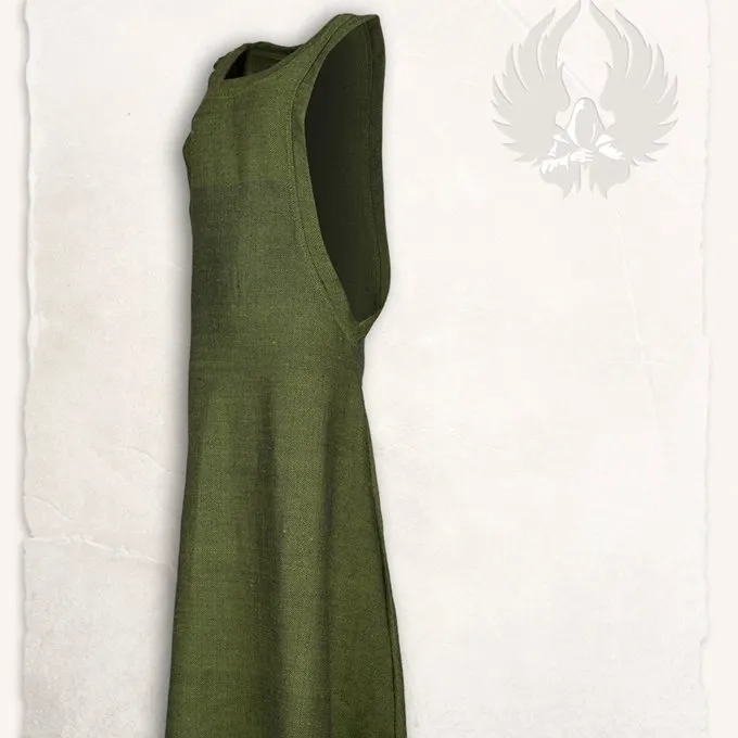 This surcot is suitable for reenactment, cosplay and LARP. The surcot is made of herringbone, which gives it an authentic look. The surcot can be worn as an overgarment.