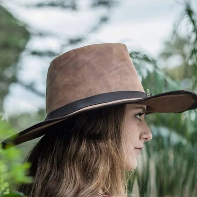 The hats from the Spanish manufacturer “Rawblade” are made from high-quality leather. Traditional craftsmanship and the highest quality standards guarantee durability and dimensional stability. A leather hat is a loyal companion in bad weather and an expressive accessory for many costumes. The “De la Croix” hat is suitable for many costumes. Whether adventurer, pirate, musketeer or as an accessory for Western costumes, you cut a good figure with this hat. Leather is a natural product and accepts dyes differently. Therefore, the color may differ from the illustration.