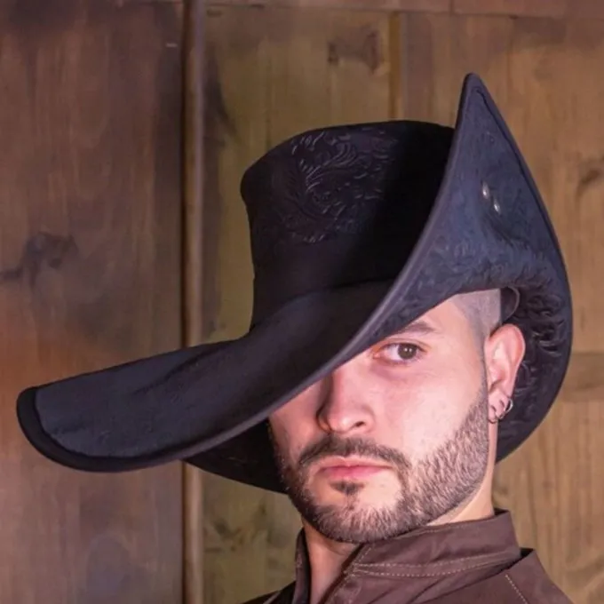 The hats from the Spanish manufacturer Rawblade are made of high-quality leather. Traditional craftsmanship and the highest quality standards guarantee a long service life and dimensional stability. A leather hat is a loyal companion in bad weather and an essential accessory for many costumes. This hat is perfect for musketeers costumes. The hat has a wide brim, ideal for hiding in the shadows from your enemy. A great hat for fighting duels.