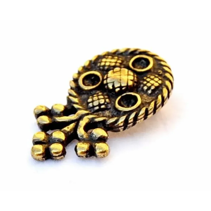 This belt fitting is made of brass and measures 3,4 x 2 cm. It is suitable for belts with a width up to 2 cm.