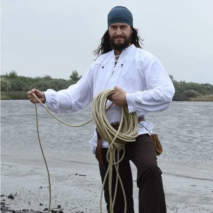 This shirt is suitable for re-enactment and LARP of different periods and characters. It is suitable for the late Middle Ages and Renaissance but also perfect to use as a pirate shirt.