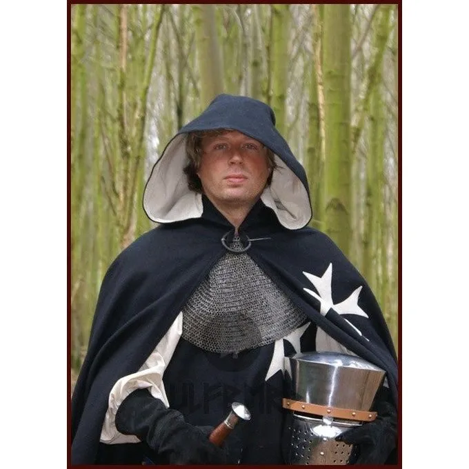 This cloak is made after historical models. It is made of a wool mix and lined with cotton. It has a length of 143 cm and a hood of 60 cm.