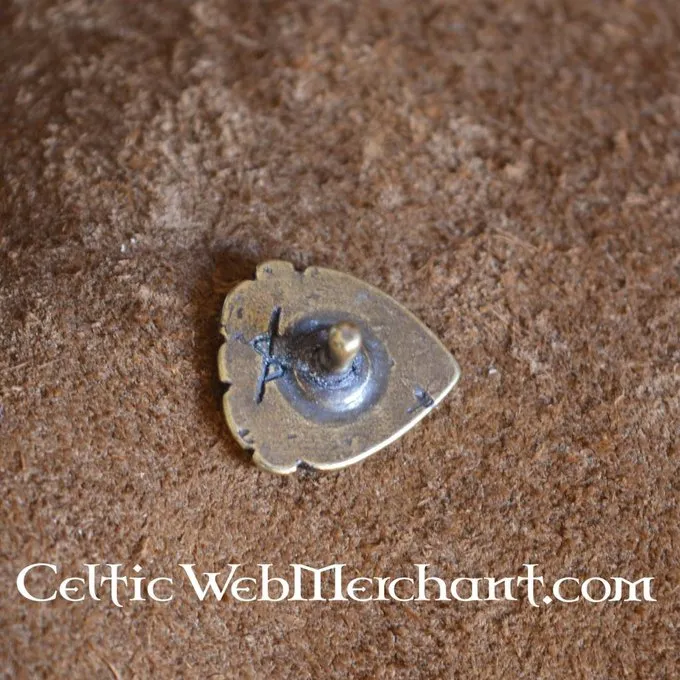 This belt fitting is made after a historical find and can be used fort he decoration of belts, but also leather bags. It is bronze-coloured.