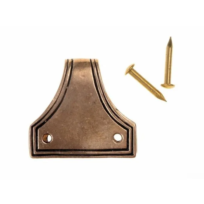 This decoration is based on a 9th-10th century original excavated in the Viking town of Birka. The decoration was used to make the leather edge of a seax or knife scabbard fittinng. Often several of these decorations were used alongside each other.